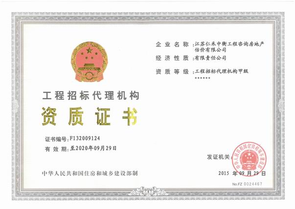 - 招標(biāo)代理甲級(jí)資格證書