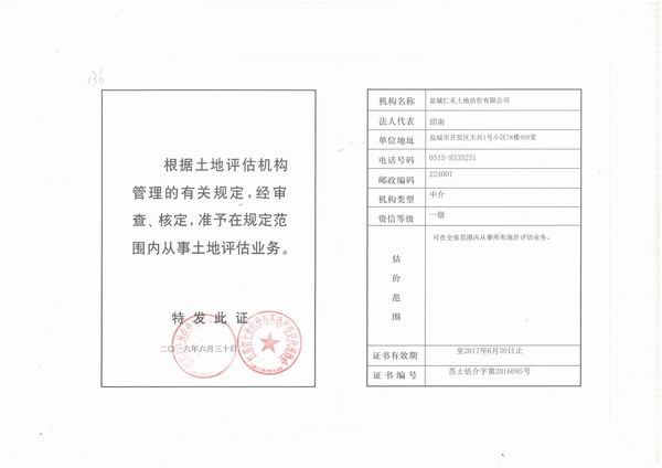 - 土地評(píng)估資質(zhì)證書